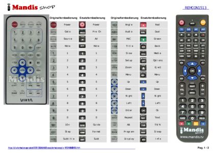 Ein Dokument ist enthalten, um die Verwendung der neuen Fernbedienung zu erleichtern, indem es die Tastenbelegung zeigt.