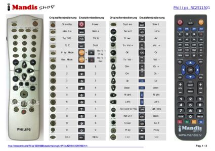 Diese Fernbedienung ersetzt Ihre RC 25115 / 01 in vollem Umfang und bietet alle Funktionen des Originals.