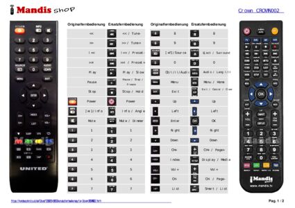 Ein Dokument ist enthalten, um die Verwendung der neuen Fernbedienung zu erleichtern, indem es die Tastenbelegung zeigt.