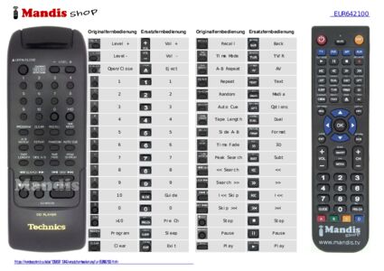 Diese Fernbedienung ersetzt Ihre EUR642101 in vollem Umfang und bietet alle Funktionen des Originals.