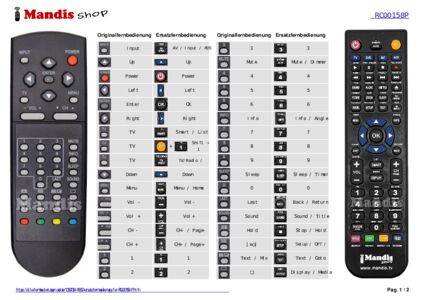 Ein Dokument ist enthalten, um die Verwendung der neuen Fernbedienung zu erleichtern, indem es die Tastenbelegung zeigt.