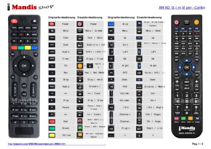 Ein Dokument ist enthalten, um die Verwendung der neuen Fernbedienung zu erleichtern, indem es die Tastenbelegung zeigt.