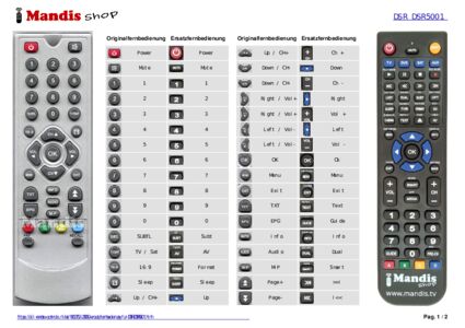 Ein Dokument ist enthalten, um die Verwendung der neuen Fernbedienung zu erleichtern, indem es die Tastenbelegung zeigt.