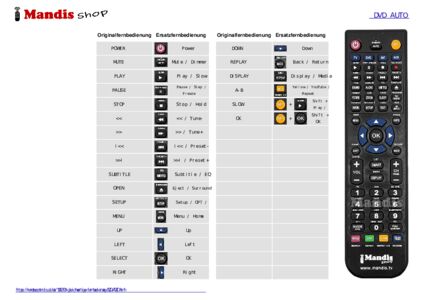 Ein Dokument ist enthalten, um die Verwendung der neuen Fernbedienung zu erleichtern, indem es die Tastenbelegung zeigt.