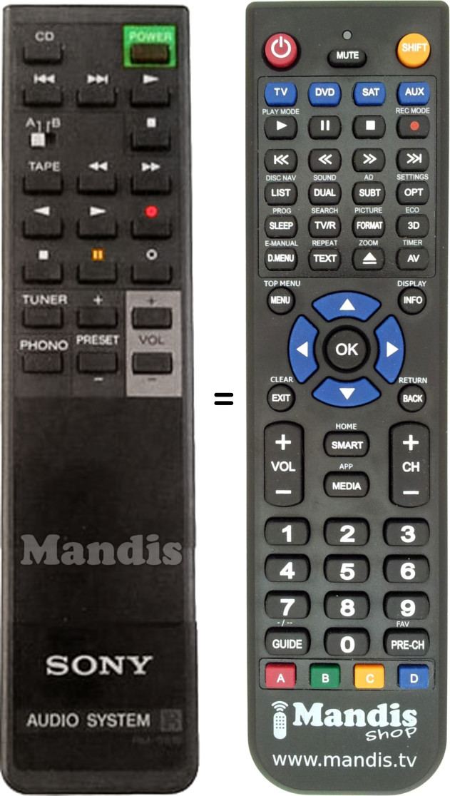 Power, CD, CD I<<, CD >>I, CD Play, CD Stop, TAPE, TAPE <<, TAPE >>, TAPE <, TAPE >, TAPE Rec, TAPE Stop, TAPE Pause, TAPE Rec Stop, TUNER, TUNER Preset+, TUNER Preset-, PHONO, Vol+, Vol-