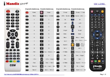 Home > Marken > Fernbedienungen CGV > Fernbedienung für CGV L22W11 > Interaktive Tastenbelegung CGV L22W11