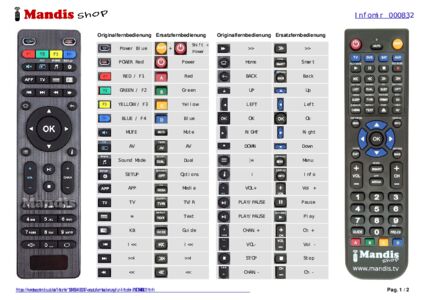 Ein Dokument ist enthalten, um die Verwendung der neuen Fernbedienung zu erleichtern, indem es die Tastenbelegung zeigt.