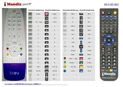 Home > Marken > Fernbedienungen BEIN > Fernbedienung für BEIN BEIN001 > Interaktive Tastenbelegung BEIN BEIN001