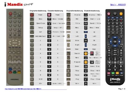 Ein Dokument ist enthalten, um die Verwendung der neuen Fernbedienung zu erleichtern, indem es die Tastenbelegung zeigt.