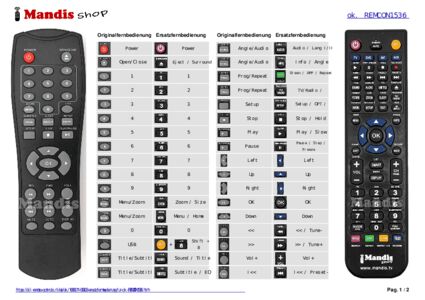 Ein Dokument ist enthalten, um die Verwendung der neuen Fernbedienung zu erleichtern, indem es die Tastenbelegung zeigt.