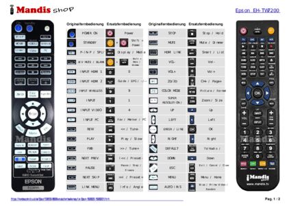 Home > Marken > Fernbedienungen Epson > Fernbedienung für Epson EH-TW7200 > Interaktive Tastenbelegung Epson EH-TW7200