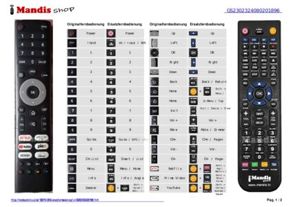Ein Dokument ist enthalten, um die Verwendung der neuen Fernbedienung zu erleichtern, indem es die Tastenbelegung zeigt.