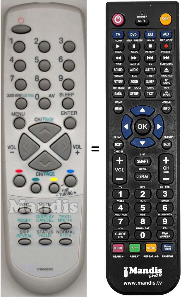 Es handelt sich jedoch nicht um eine Universalfernbedienung sondern um eine Fernbedienung die das Original ersetzt.
