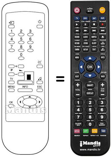 Fernbedienung, die das Original und die Gesamtheit seiner Funktionen, vollständig ersetzt.