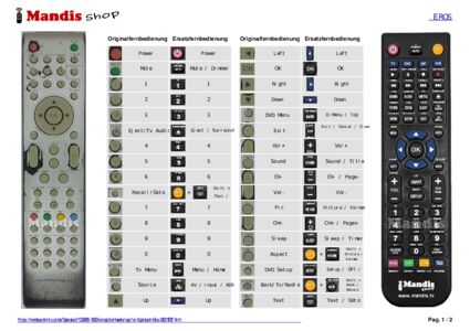 Ein Dokument ist enthalten, um die Verwendung der neuen Fernbedienung zu erleichtern, indem es die Tastenbelegung zeigt.