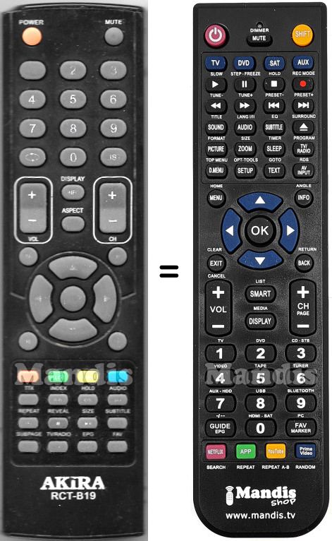 Home > Marken > Fernbedienungen AKIRA > Fernbedienung für AKIRA RCT-B19