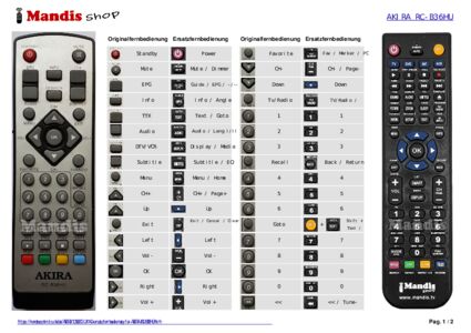 Ein Dokument ist enthalten, um die Verwendung der neuen Fernbedienung zu erleichtern, indem es die Tastenbelegung zeigt.