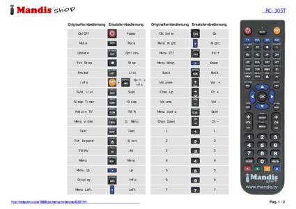 Ein Dokument ist enthalten, um die Verwendung der neuen Fernbedienung zu erleichtern, indem es die Tastenbelegung zeigt.