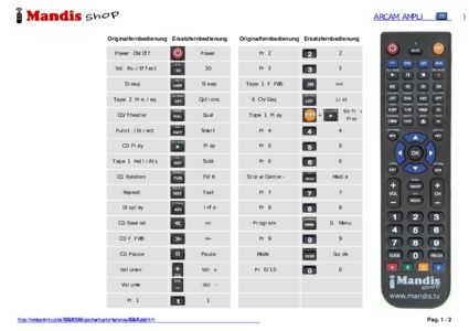 Ein Dokument ist enthalten, um die Verwendung der neuen Fernbedienung zu erleichtern, indem es die Tastenbelegung zeigt.