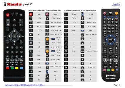 Ein Dokument ist enthalten, um die Verwendung der neuen Fernbedienung zu erleichtern, indem es die Tastenbelegung zeigt.