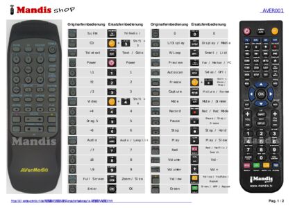 Diese Fernbedienung ersetzt Ihre AVER001 in vollem Umfang und bietet alle Funktionen des Originals.