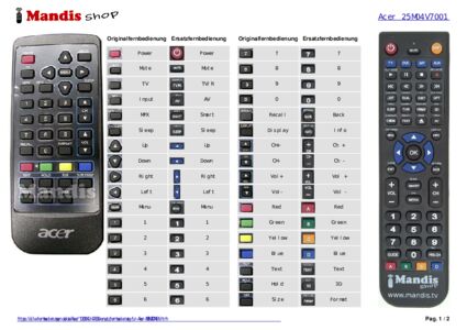 Home > Marken > Fernbedienungen Acer > Fernbedienung für Acer 25M04V7001
