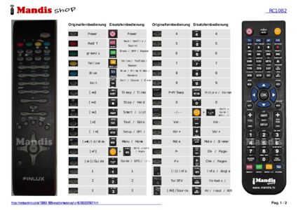 Ein Dokument ist enthalten, um die Verwendung der neuen Fernbedienung zu erleichtern, indem es die Tastenbelegung zeigt.