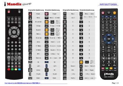 Ein Dokument ist enthalten, um die Verwendung der neuen Fernbedienung zu erleichtern, indem es die Tastenbelegung zeigt.
