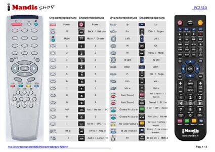 Ein Dokument ist enthalten, um die Verwendung der neuen Fernbedienung zu erleichtern, indem es die Tastenbelegung zeigt.