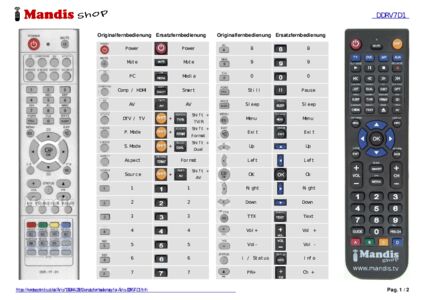 Ein Dokument ist enthalten, um die Verwendung der neuen Fernbedienung zu erleichtern, indem es die Tastenbelegung zeigt.