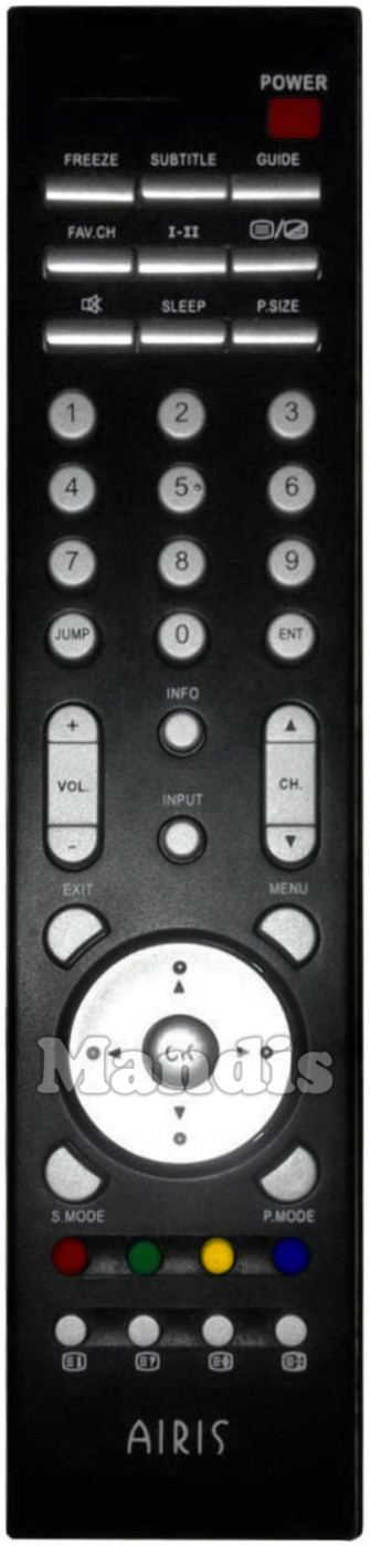 Fernbedienung Original Airis003 zur Steuerung der TV-Geräte der Marke Airis. Es handelt sich um eine Originalfernbedienung.