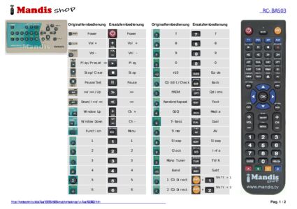 Diese Fernbedienung ersetzt Ihre RC-BAS03 in vollem Umfang und bietet alle Funktionen des Originals.