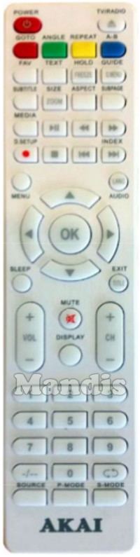 Fernbedienung Original AKA008 zur Steuerung der TV-Geräte der Marke Akai. Es handelt sich um eine Originalfernbedienung.
