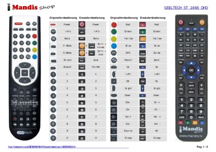 Ein Dokument ist enthalten, um die Verwendung der neuen Fernbedienung zu erleichtern, indem es die Tastenbelegung zeigt.