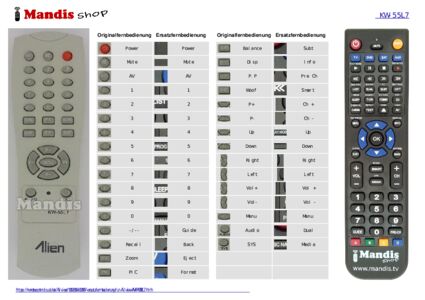 Diese Fernbedienung ersetzt Ihre MV-KW55L7 in vollem Umfang und bietet alle Funktionen des Originals.