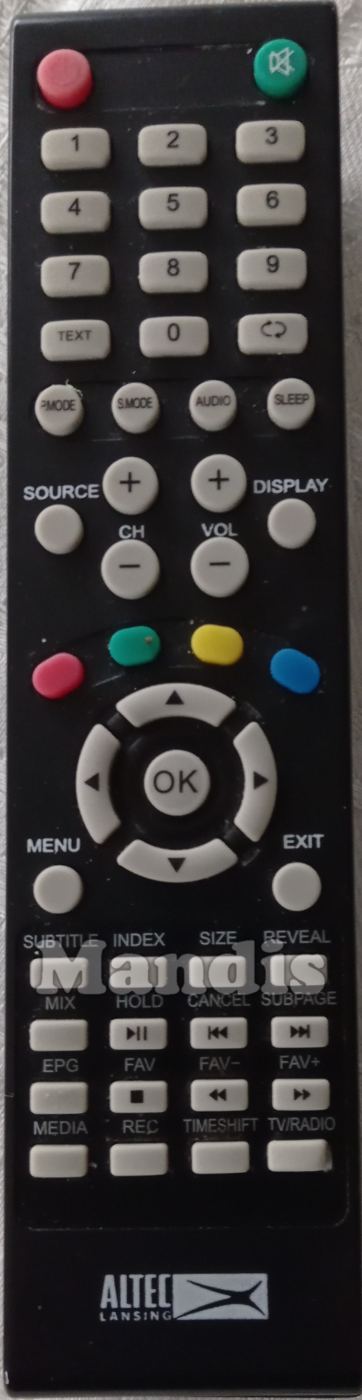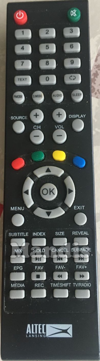 Fernbedienung Original AL-TV40FHD-001 zur Steuerung der TV-Geräte der Marke Altec Lansing. Es handelt sich um eine Originalfernbedienung.
