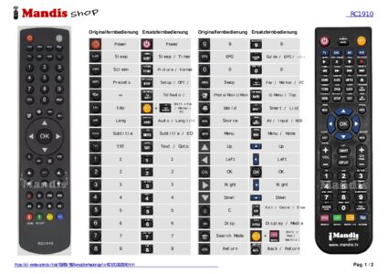 Ein Dokument ist enthalten, um die Verwendung der neuen Fernbedienung zu erleichtern, indem es die Tastenbelegung zeigt.