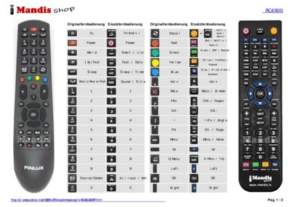 Ein Dokument ist enthalten, um die Verwendung der neuen Fernbedienung zu erleichtern, indem es die Tastenbelegung zeigt.