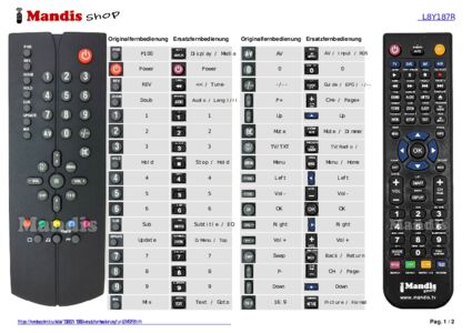 Ein Dokument ist enthalten, um die Verwendung der neuen Fernbedienung zu erleichtern, indem es die Tastenbelegung zeigt.