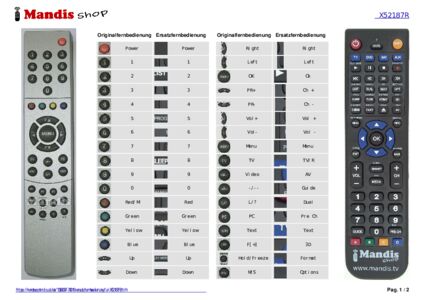 Ein Dokument ist enthalten, um die Verwendung der neuen Fernbedienung zu erleichtern, indem es die Tastenbelegung zeigt.