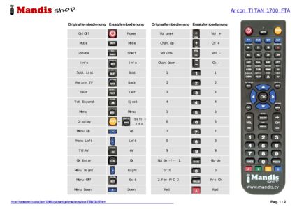 Ein Dokument ist enthalten, um die Verwendung der neuen Fernbedienung zu erleichtern, indem es die Tastenbelegung zeigt.