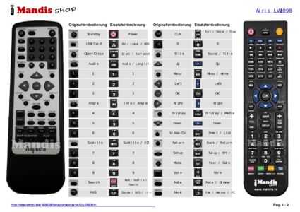 Ein Dokument ist enthalten, um die Verwendung der neuen Fernbedienung zu erleichtern, indem es die Tastenbelegung zeigt.