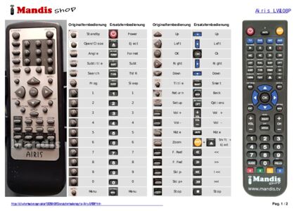 Ein Dokument ist enthalten, um die Verwendung der neuen Fernbedienung zu erleichtern, indem es die Tastenbelegung zeigt.
