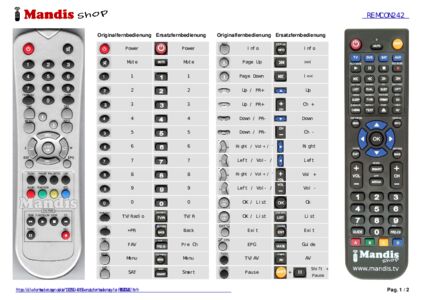 Ein Dokument ist enthalten, um die Verwendung der neuen Fernbedienung zu erleichtern, indem es die Tastenbelegung zeigt.