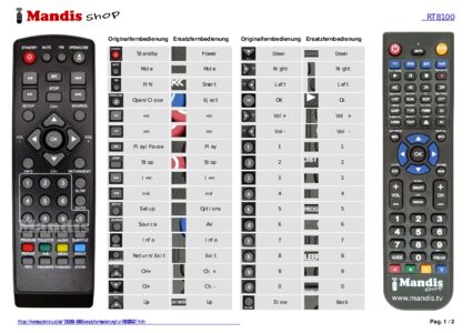 Diese Fernbedienung ersetzt Ihre RT8100M in vollem Umfang und bietet alle Funktionen des Originals.