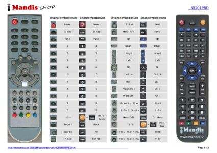 Ein Dokument ist enthalten, um die Verwendung der neuen Fernbedienung zu erleichtern, indem es die Tastenbelegung zeigt.