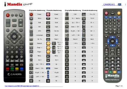 Ein Dokument ist enthalten, um die Verwendung der neuen Fernbedienung zu erleichtern, indem es die Tastenbelegung zeigt.