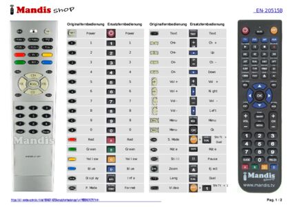 Ein Dokument ist enthalten, um die Verwendung der neuen Fernbedienung zu erleichtern, indem es die Tastenbelegung zeigt.