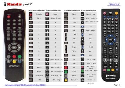 Ein Dokument ist enthalten, um die Verwendung der neuen Fernbedienung zu erleichtern, indem es die Tastenbelegung zeigt.