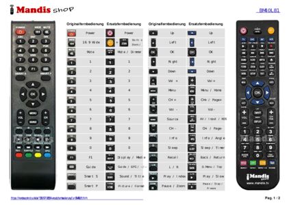 Ein Dokument ist enthalten, um die Verwendung der neuen Fernbedienung zu erleichtern, indem es die Tastenbelegung zeigt.
